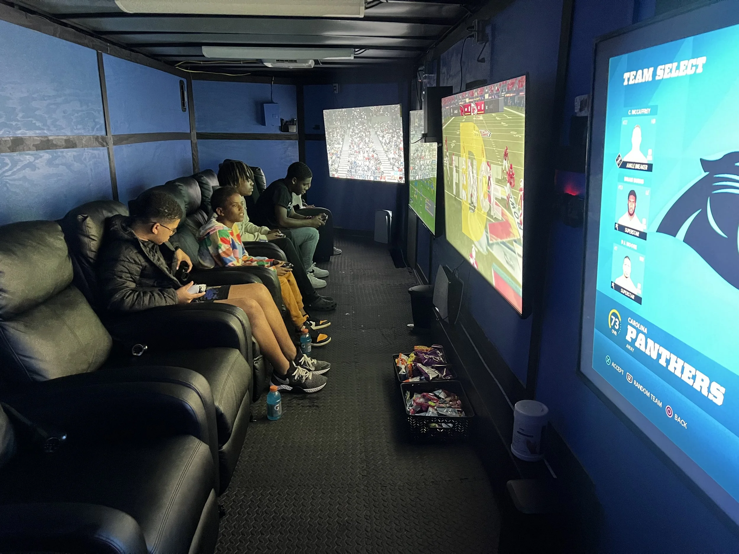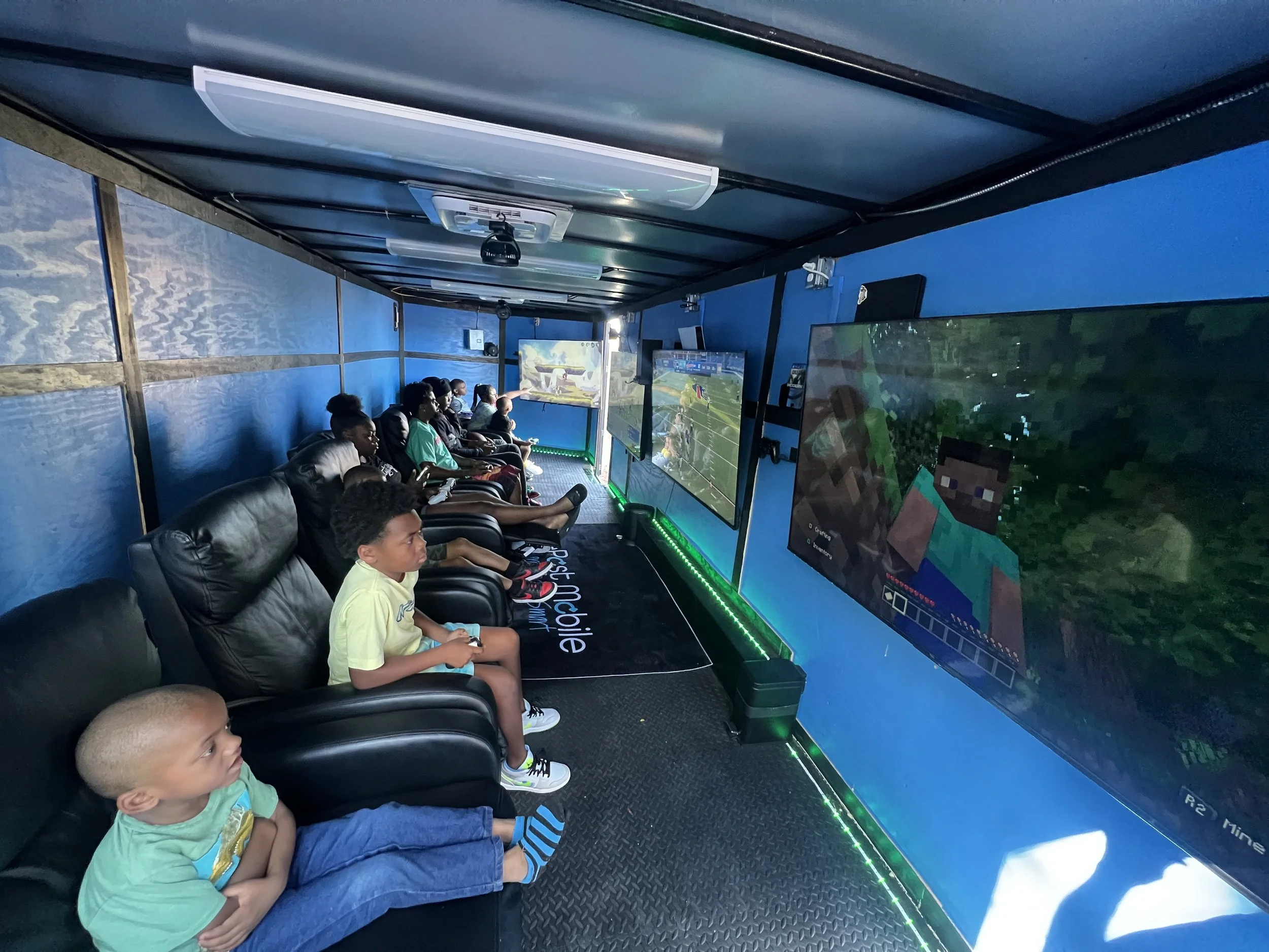 PrePost Mobile Gaming brings the best theater quality and gaming experience right to you! Our 24 foot trailer has 4 gaming stations playing on 65 inch tv’s and full climate control. With 10 comfortable reclining chairs and studio quality sound for party scenes.